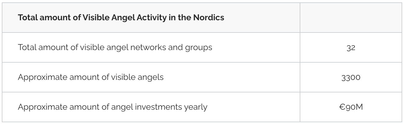 NordicBAN also estimated in the end of 2018 that there are in total around 3 300 angel investors in the Nordics investing around 90m€ in total yearly. That’s quite a bit of money and many companies since angel the checks written by angels are typically quite small.